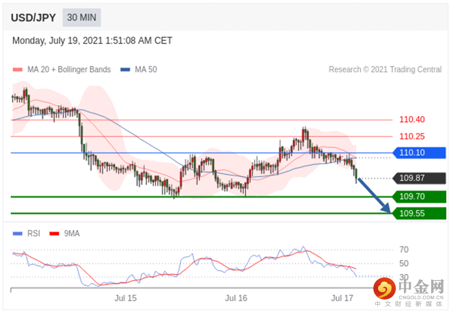 在 110.10 之下,看跌,目标价位为 109.70 ,然后为 109.55 。