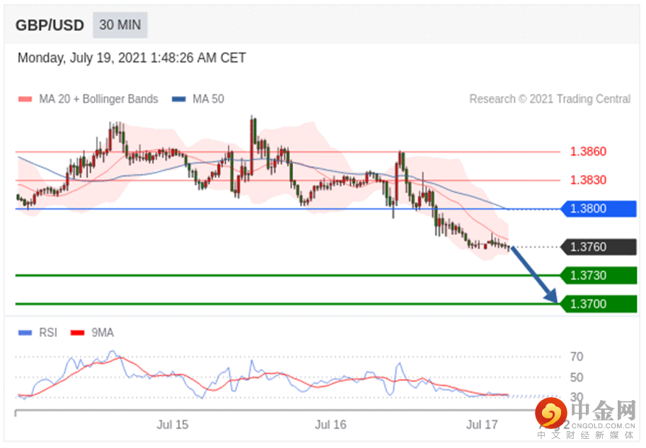 在 1.3800 之下,看跌,目标价位为 1.3730 ,然后为 1.3700 。