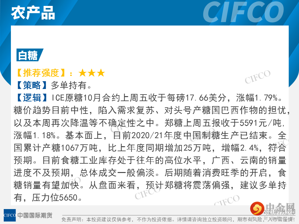 投研日报 | 投资行情星标推荐(2021-7-19)
