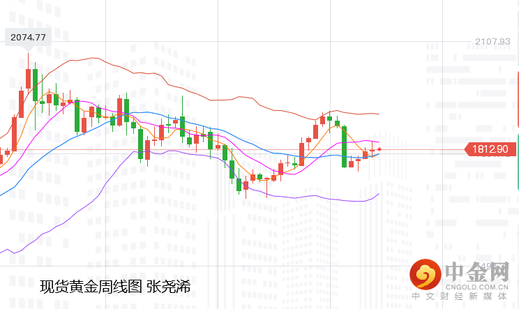 但美国关键通胀指标CPI、PPI,以及周五恐怖数据美国零售销售等重磅经济数据相继公布表现靓丽并爆表,仍使投资者坚定美联储未来逐步收紧货币政策的预期,黄金多头有所顾忌,并就此回吐大部分涨幅,终收于1810.40美元,周振幅42.38美元,收涨2.67美元,涨幅0.15%。