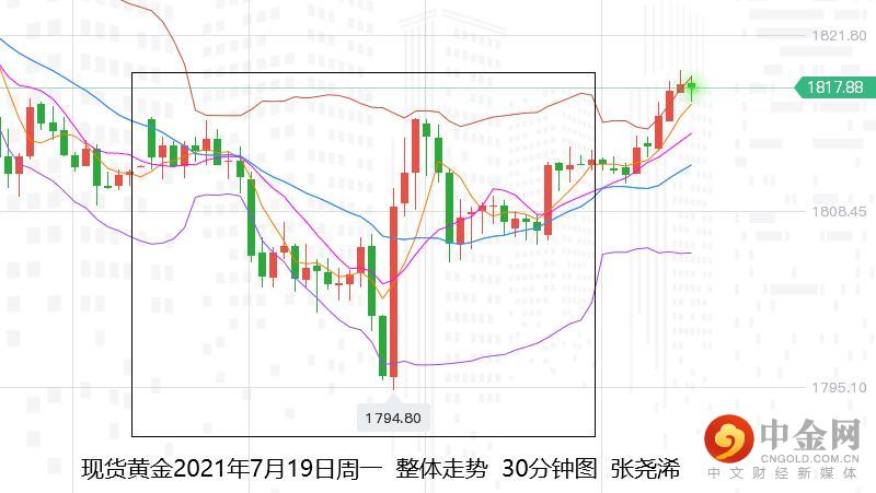 但较长期上,近期美国和其他国家的新冠病例迅速增加,加剧了人们对疫情再度加重的担忧,并在全球股市引发了冲击波,同时,随着Delta变种的迅速蔓延 并且各央行已经在讨论收紧货币政策来控制通胀,越来越多的人开始担心金融市场变得过于乐观。更有市场对于美国经济产生见顶担忧,这将是利好金价。另外技术上,也存在较大的反弹预期,下面重点分析;