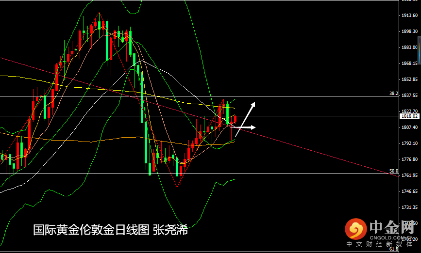 现在金价虽陷入了一场拉锯战,一边是美元升值压低了金价,另一边是风险偏好下降支撑了金价。根据上周四的十字星来看,金价短线可能继续围绕着1800关键位震荡。