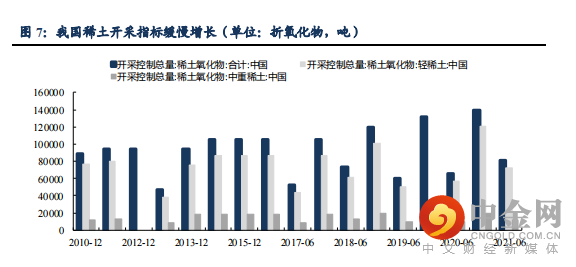 2006-2020年我国稀土开采控制总量年复合增速仅为3.5%,轻、中重稀土增速分别为 3.2%、6.0%,这远小于未来几年全国稀土需求的增速。