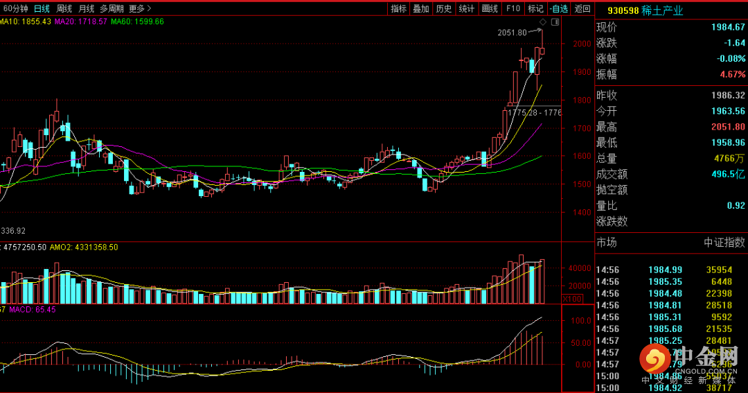 最近市场分化严重,白马蓝筹股萎靡不振,少数几个成长性强的芯片、光伏、稀土和锂电池等板块表现较好。其中稀土板块表现最抢眼,该指数(930598)近期出现连续放量大涨现象,半个月时间涨幅就达22%多,远超各大指数涨幅。