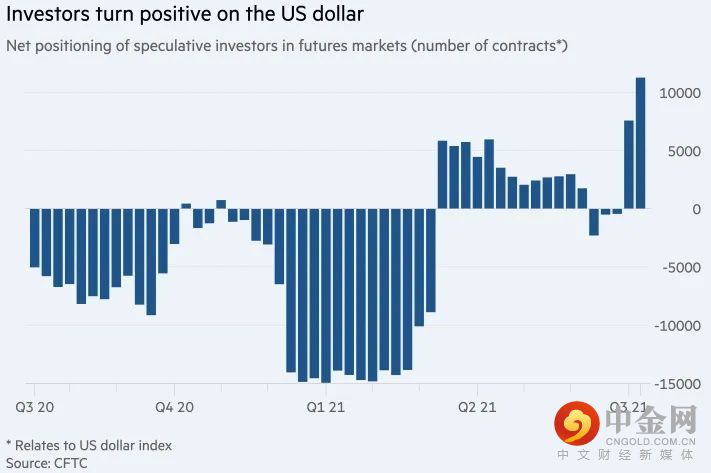据英国《金融时报》报道,美国商品期货交易委员会(CFTC)的数据显示,本月美元看涨押注大幅增加,投机性净多头头寸增至11,257份合约,创一年多来最高水平。对冲基金等投机客越来越看好美元兑欧元、英镑和日元的前景。