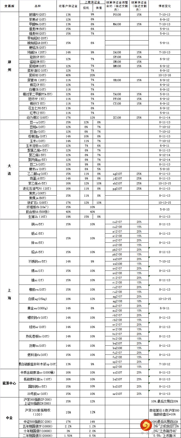交易提示 | 期货交易保证金率一览(0720)