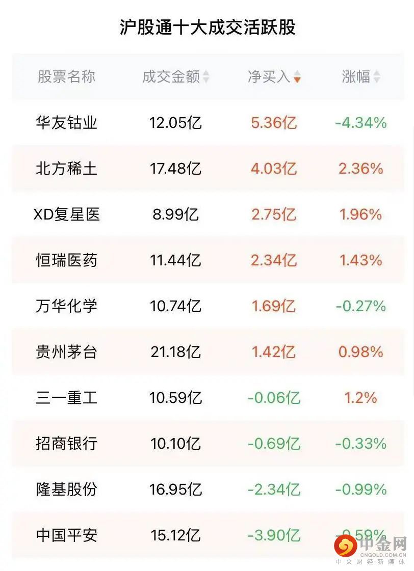 北向资金19日净流入43.74亿,其中沪股通净流入11.75亿元,深股通净流入31.99亿元。个股方面,华友钴业净买入5.36亿,迈瑞医疗净买入4.54亿;京东方A净卖出6.16亿元、中国平安净卖出3.9亿元。