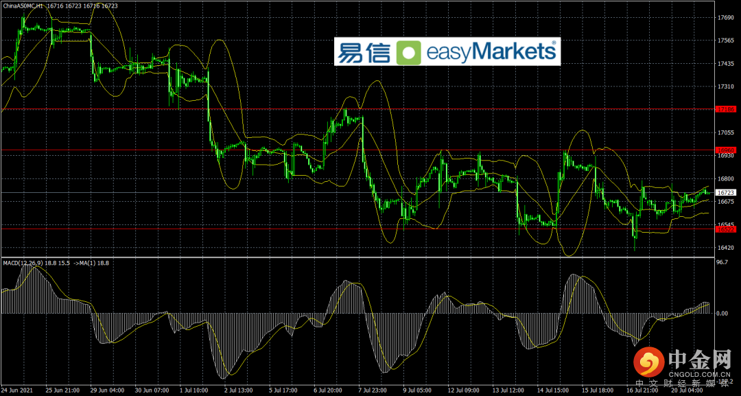技术看,A50支撑是16500附近破位不轻易猜低点,上方压力是16750附近。指标看布林线开口横盘,MACD在0轴附近徘徊。鉴于上下方位置重要性,投资人避免突破前追单,可以尝试高抛低吸交易,突破则反手追单。