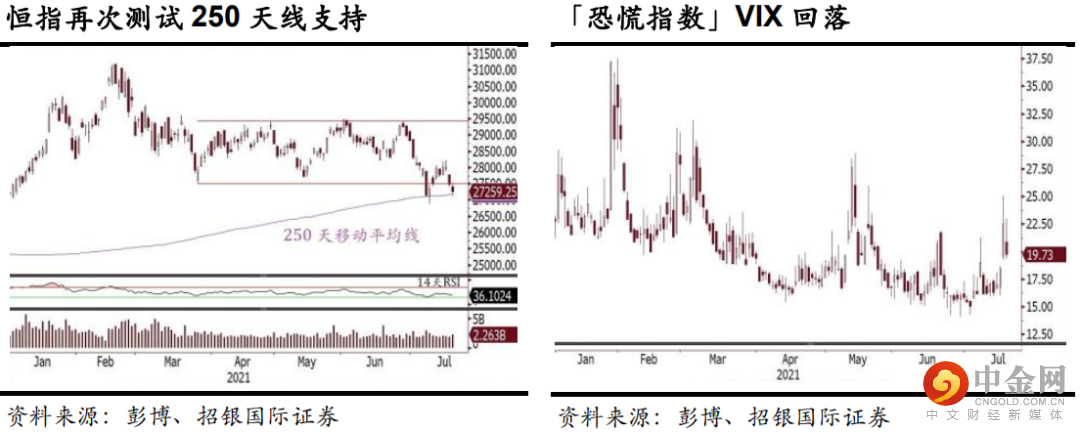 美股报复式反弹,恒指250天线争持。港股连跌两天,恒指昨天随隔夜欧美股市下挫,最多跌368点,收市跌231点或0.84%。科技指数跌0.94%,连跌四天。大市成交跌至1,395亿港元。恒大(3333 HK)沽压未止,再跌10%,恒大汽车(708 HK)挫11%,连跌七天,但恒大物业(6666 HK)创上市新低后倒升0.1%。隔晚油价急跌7%,中石油(857 HK)挫3.6%。美股前天急挫后,昨天报复式反弹,反映市场对经济增长的忧虑暂时纾缓。美股三大指数均升约1.6%,收复前日大部分失地。银行股领涨,标普500银行股指数升2.6%。图表上,恒指昨天再次下试250天平均线(27,169),失而复得,暂有支持,但尚未重上近月横行区27,500-29,500之内。