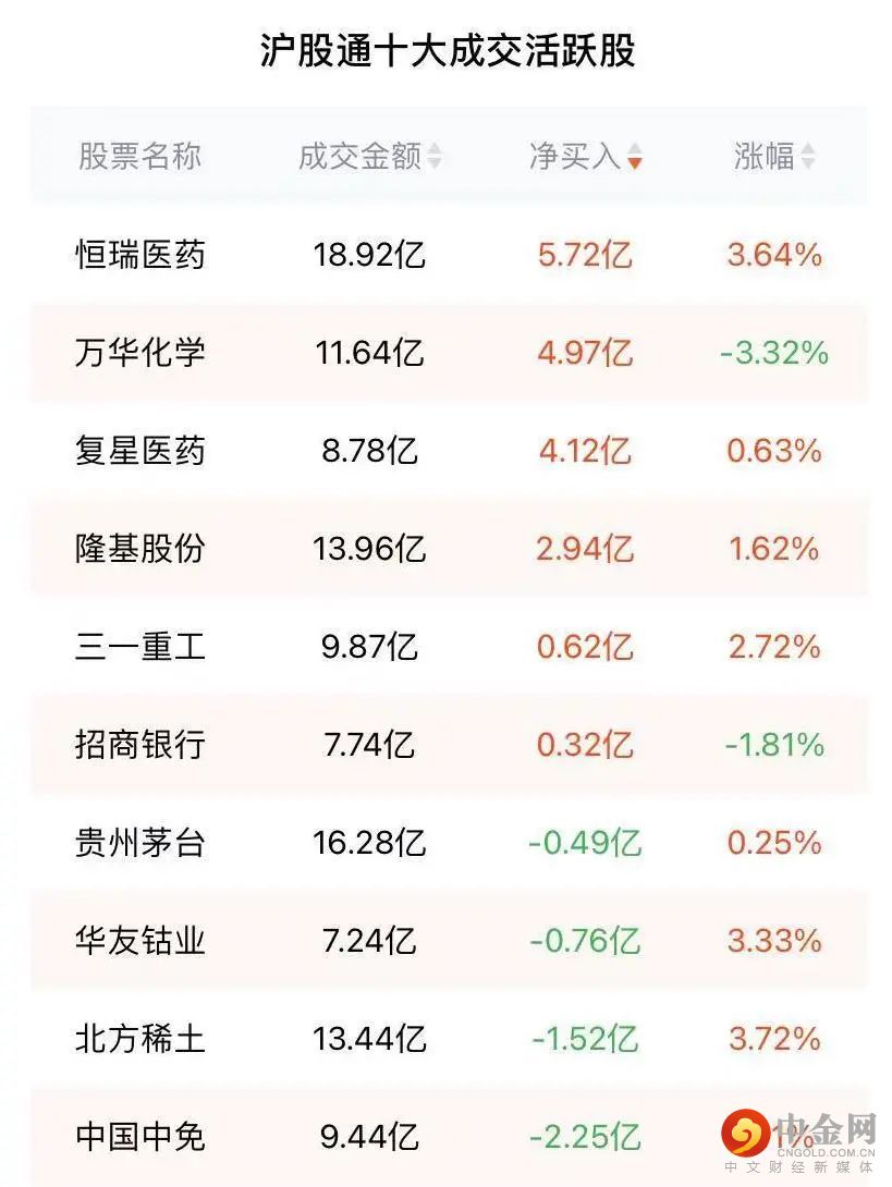 北向资金7月20日净买入30.64亿元,其中沪股通净买入16.04亿元,深股通净买入14.60亿元。恒瑞医药、万华化学、复星医药分别获净买入5.72亿元、4.97亿元、4.12亿元。中国中免净卖出额居首,金额为2.25亿元。