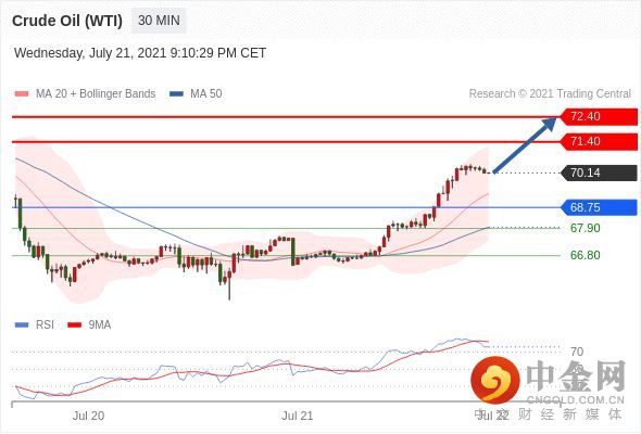 随后的阻力位是71.40,然后为72.40。