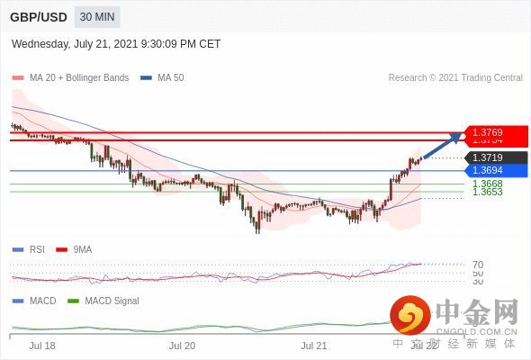看涨,当 1.3694 为支撑位。