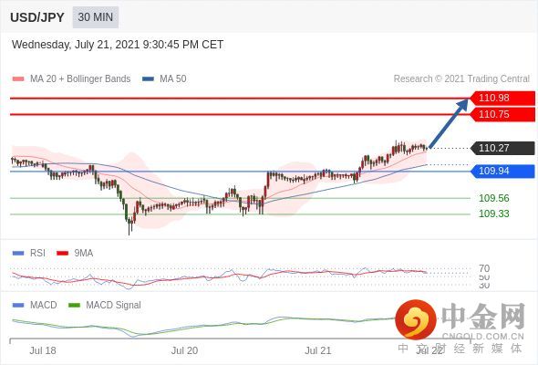 看涨,当 109.94 为支撑位,目标定在110.98。
