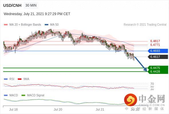 如突破 6.4693 ,USD/CNH 目标方向为 6.4771 和 6.4817 。
