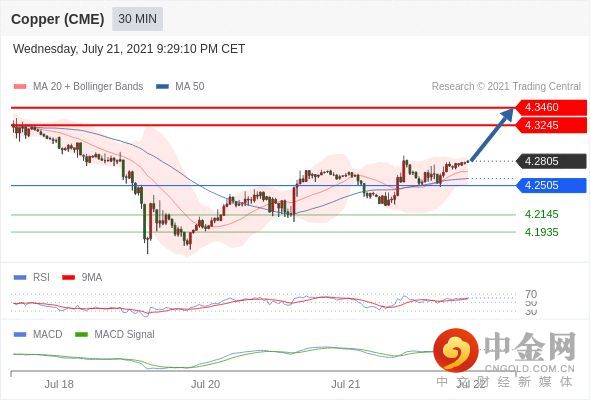 看涨,当 4.2505 为支撑位。