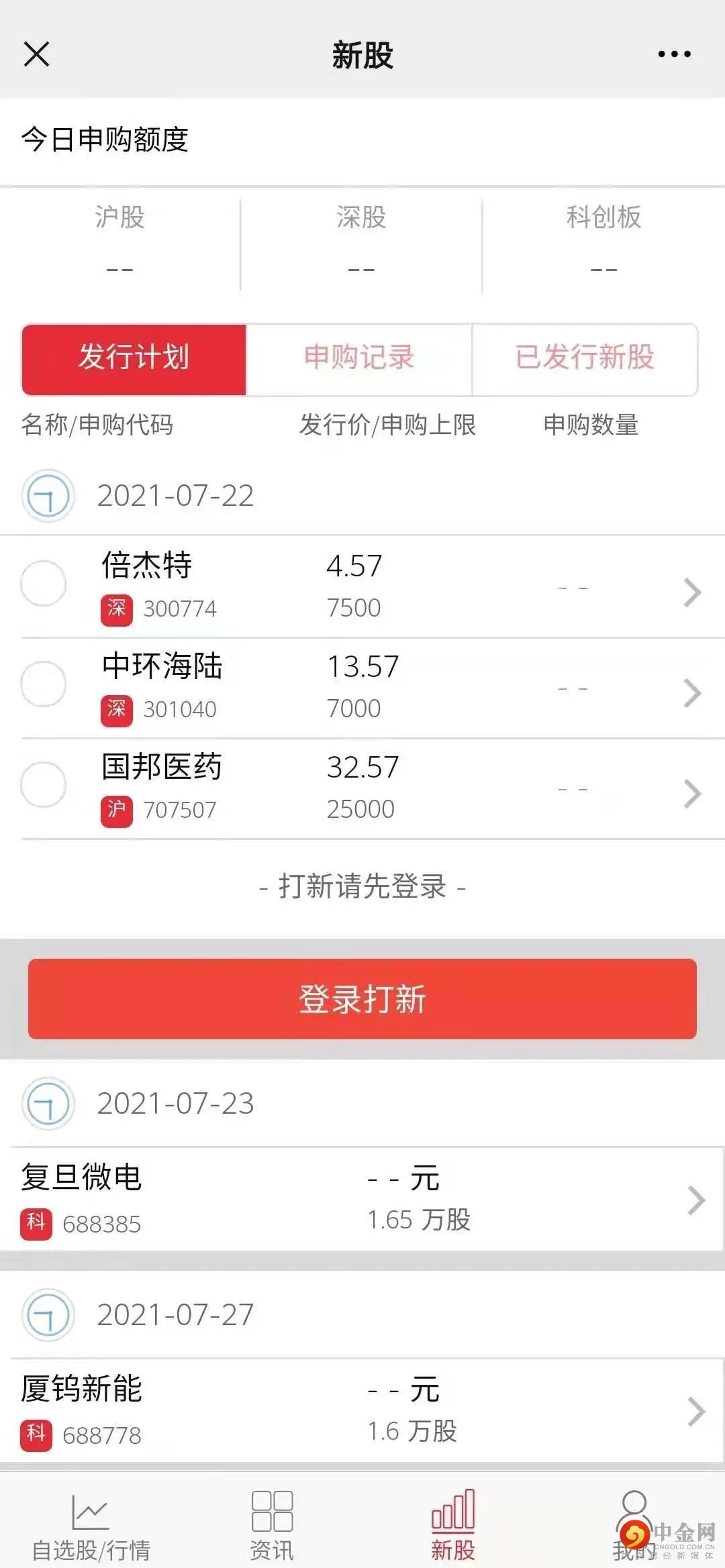 下载国元点金APP,点击【一键打新】