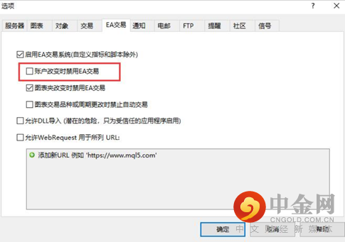 如果您是EA交易者,我们建议您根据EA交易策略可以在周六凌晨收盘前后,按下图在EA交易选项中取消 【账户改变时禁用EA交易】 ,待到服务器升级完成重新登录后再选中即可。