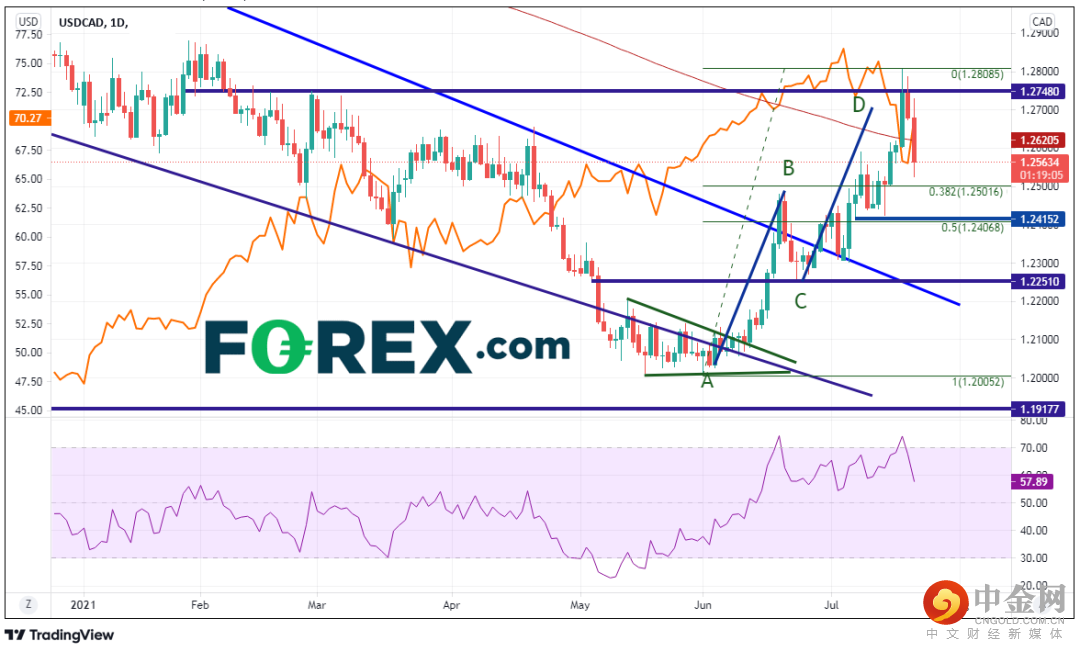 加拿大央行在上次会议上将每周债券购买金额从30亿加元收缩至20亿加元,但美元/加元还是持续上涨,当时油价下跌。两者恢复之前的关联性。美元/加元似乎在跟随今天上涨近6%的油价,呈现5月6日以来最大单日跌幅。美元/加元的支撑位在6月1日低点到7月19日高点的38.2%回档位,即1.2500附近。水平支撑位兼50%回档位就在下方不远处,即1.2495/1.2415附近。阻力位在200天均线1.2620附近、水平阻力位1.2748和7月19日高点1.2808。