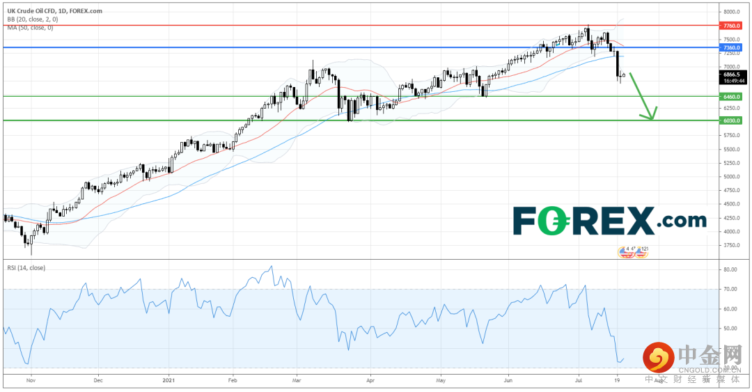 油价于周一急泻因石油输出国组织及其盟友(OPEC+)打破僵局,同意从8月起增加石油供应每日40万桶。除此之外,市场气氛亦受到变种新冠病毒Delta所打击,一些国家和地区开始重新出台封锁措施,市场忧虑原油需求的复苏缓慢。