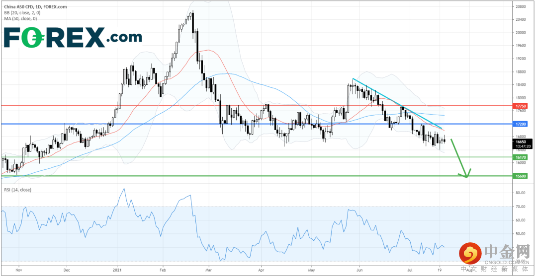 中国A50 指数CFD持续受压并下试今年4月,尽管中国人民银行于上周宣布下调金融机构存款准备率0.5%,但市场气氛仍然未见明显的改善。