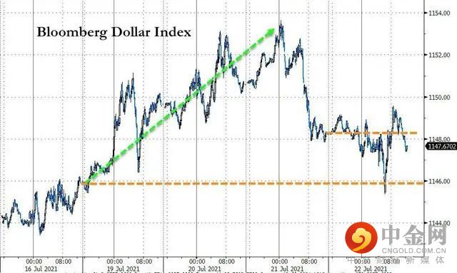 美国失业数据公布后,美国国债价格盘中曾反弹,基准10年期美债收益率一度逼近1.32%刷新本周内高位,但升势未能保持,美股盘中转降,跌落1.30%。美元指数盘中曾创本周内新低,美股盘中转涨。