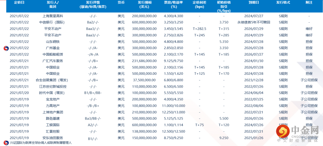 近期新发中资美元债