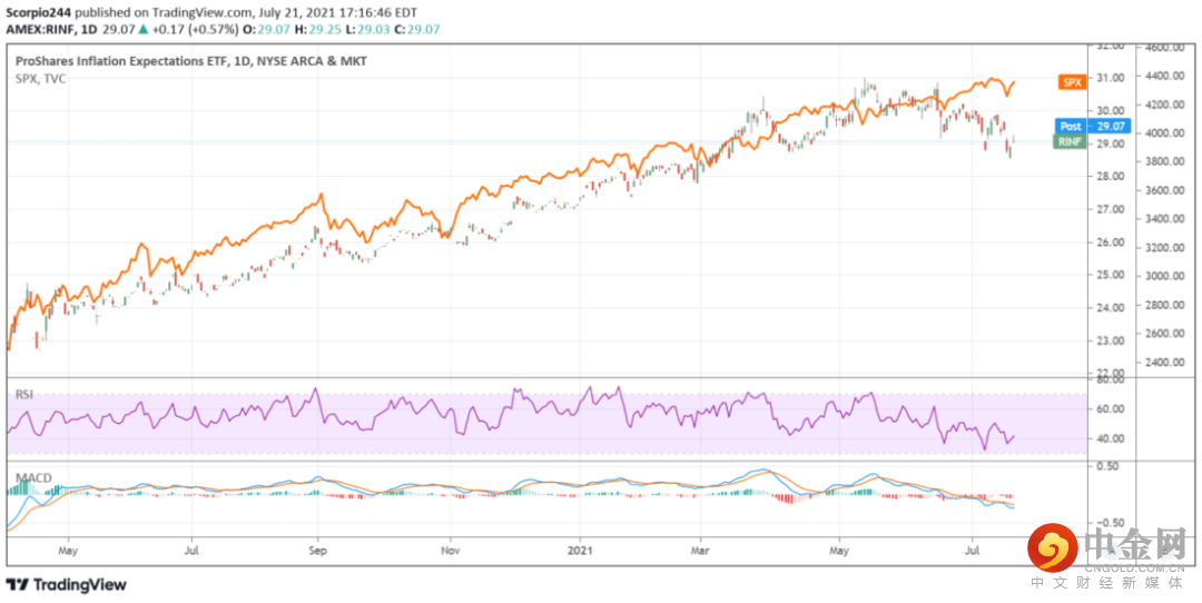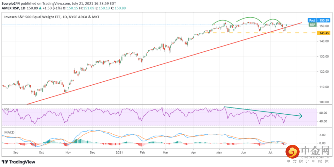 标普500等权指数基金的动能不佳,并且这些负向的趋势是建立在MACD和相对强弱指数RSI的基础上。