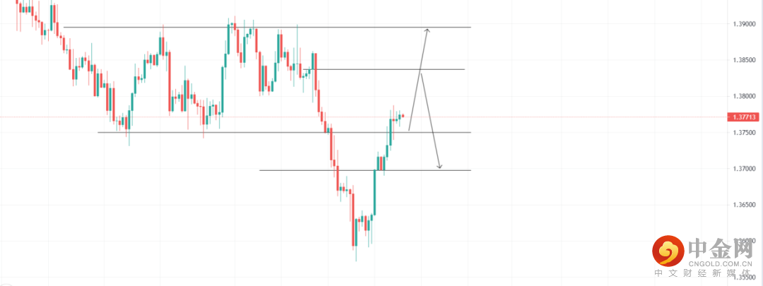 美元指数受承压,英镑上涨,关注1.37498的支撑位置,4小时回调收多即可看多至压力位1.38954,止损1.37301;关注1.38370压力位,4小时受阻收空即可看空至1.36975支撑位,止损1.38658
