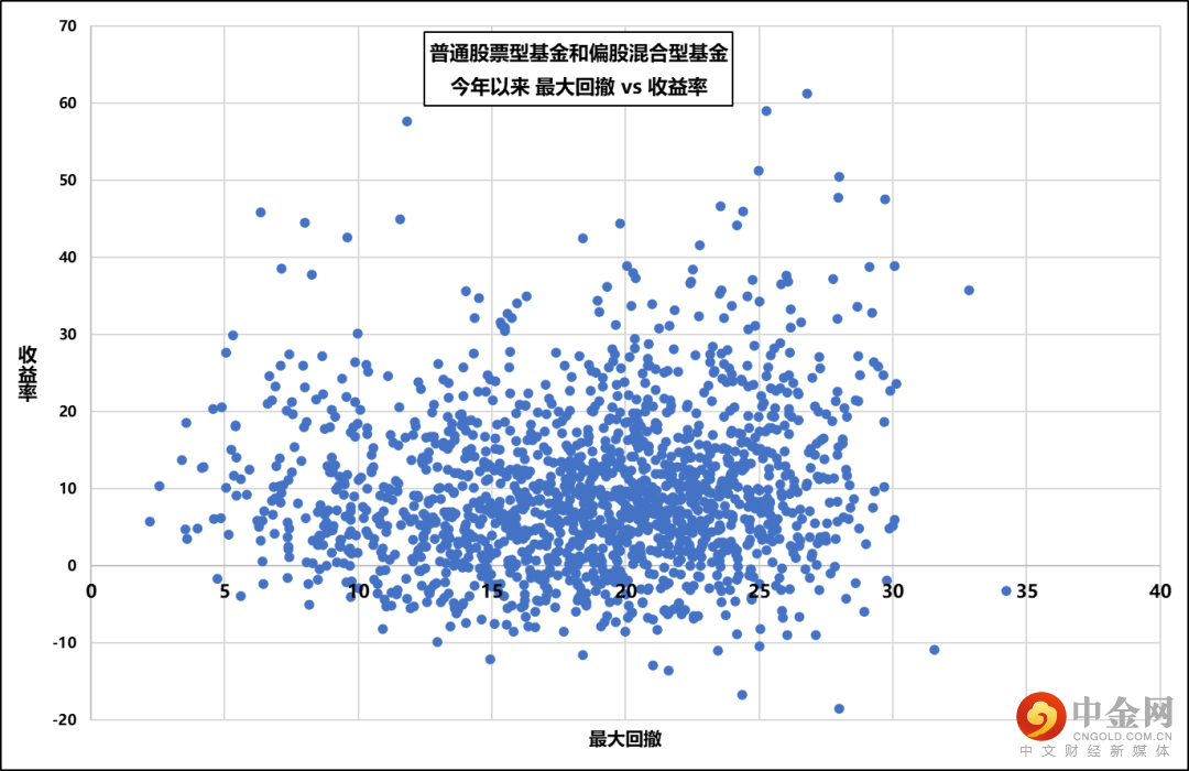 图1. 股票基金今年以来最大回撤vs收益率。