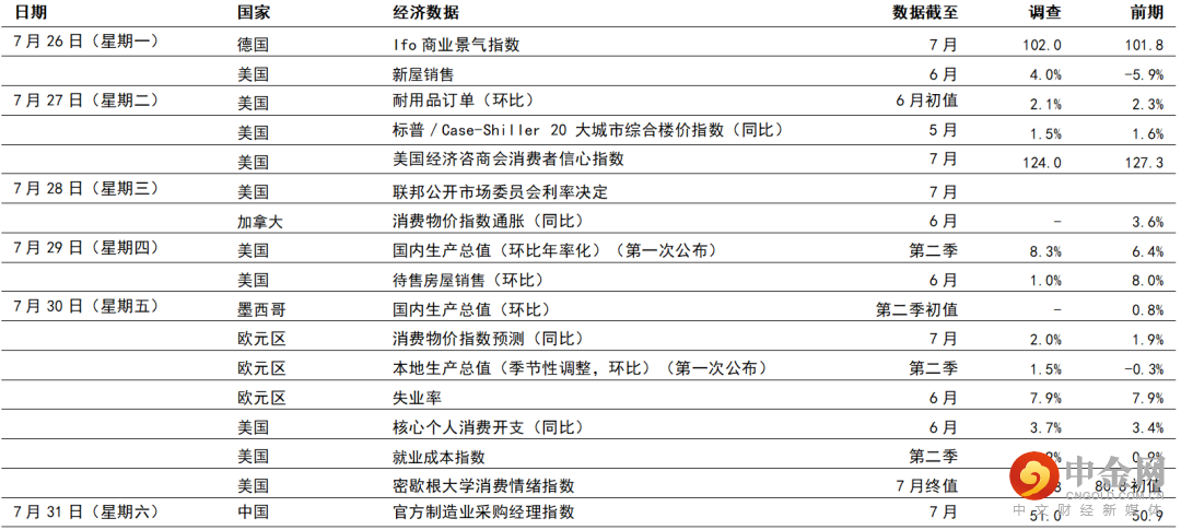 本周将公布多项数据,第二季国内生产总值的首次公布将成为焦点,预期将显示美国经济增长8.3%(环比年率化),高于第一季的6.4%(环比年率化)。统计数据反映消费开支增长稳健,而服务开支的复苏超出商品开支的增长。第二季房屋销售放缓,但住宅建筑活动继续活跃,这可能支持住宅投资增长。工业一直是美国经济的另一个强劲领域,但波动的分项指数(计算机和汽车等)疲弱,可能削弱第二季整体设备投资。