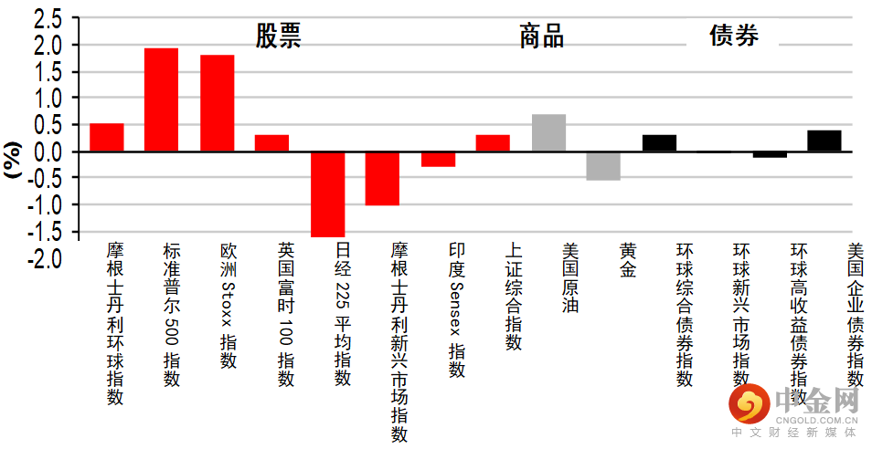 债券:美国国库券息率上升,风险情绪有改善降低了避险资产的需求;欧洲政府债券息率下跌