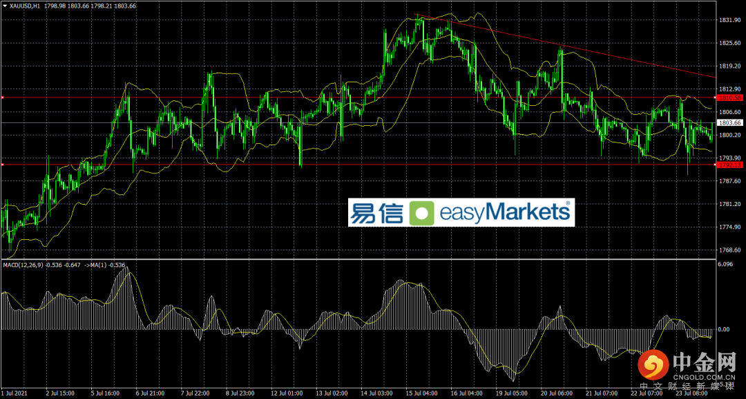 技术上黄金上方1811美元附近关键压力,突破看1818美元附近,支撑是1800美元附近,1790美元附近。指标看布林线开口横盘,MACD在0轴附近震荡。交易策略,鉴于上下方位置重要性,可以尝试高抛低吸,突破则反手追单。