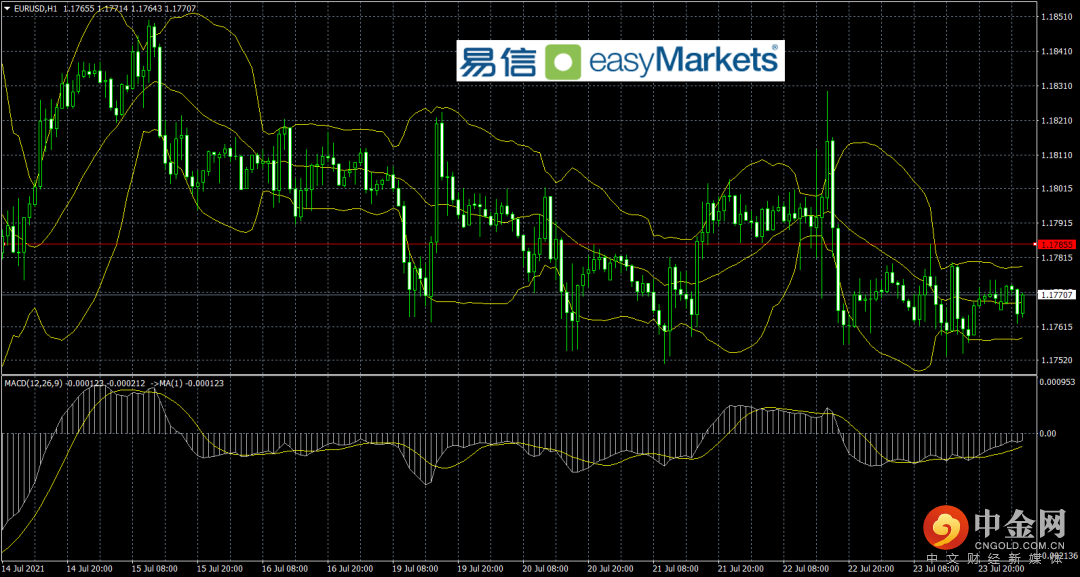 技术看,欧元第一压力是1.18附近,突破看1.183附近,1.175第一支撑,破位看1.173附近。指标看布林线开口横盘,MACD在0轴附近震荡。交易策略,鉴于上下方位置重要性,投资人避免突破前追单,可以尝试高抛低吸交易,突破则反手追单。