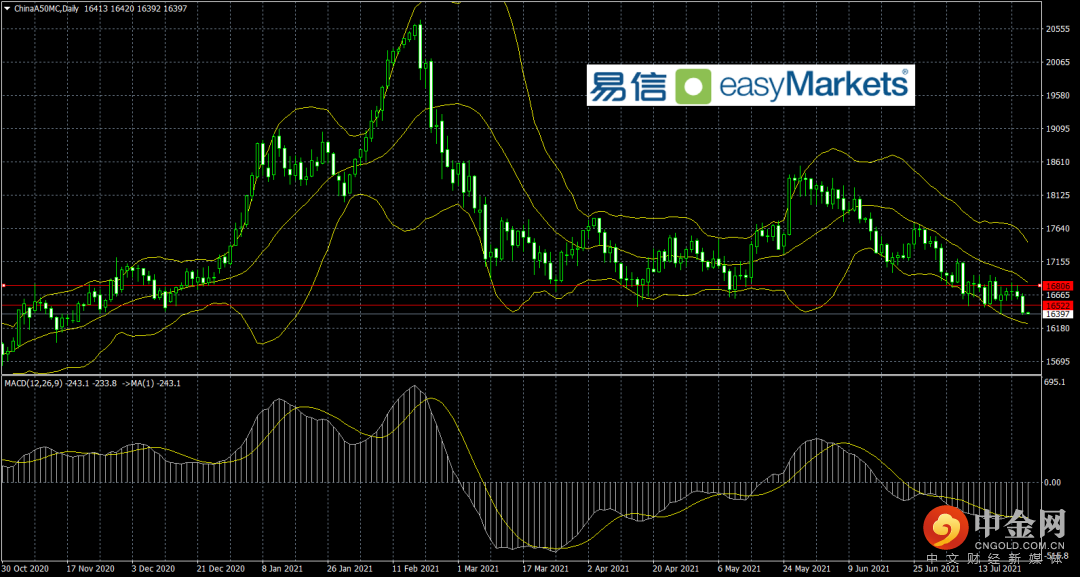 技术看,A50支撑是16400附近破位不轻易猜低点,上方压力是16800附近。指标看布林线开口略向下,MACD在低位徘徊。鉴于下方位置重要性,破位前避免低位追空, 等待破位后再追空交易。