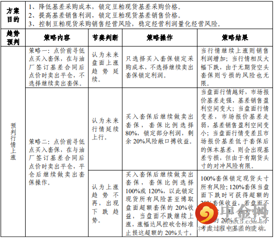 表为豆粕现货套保方案