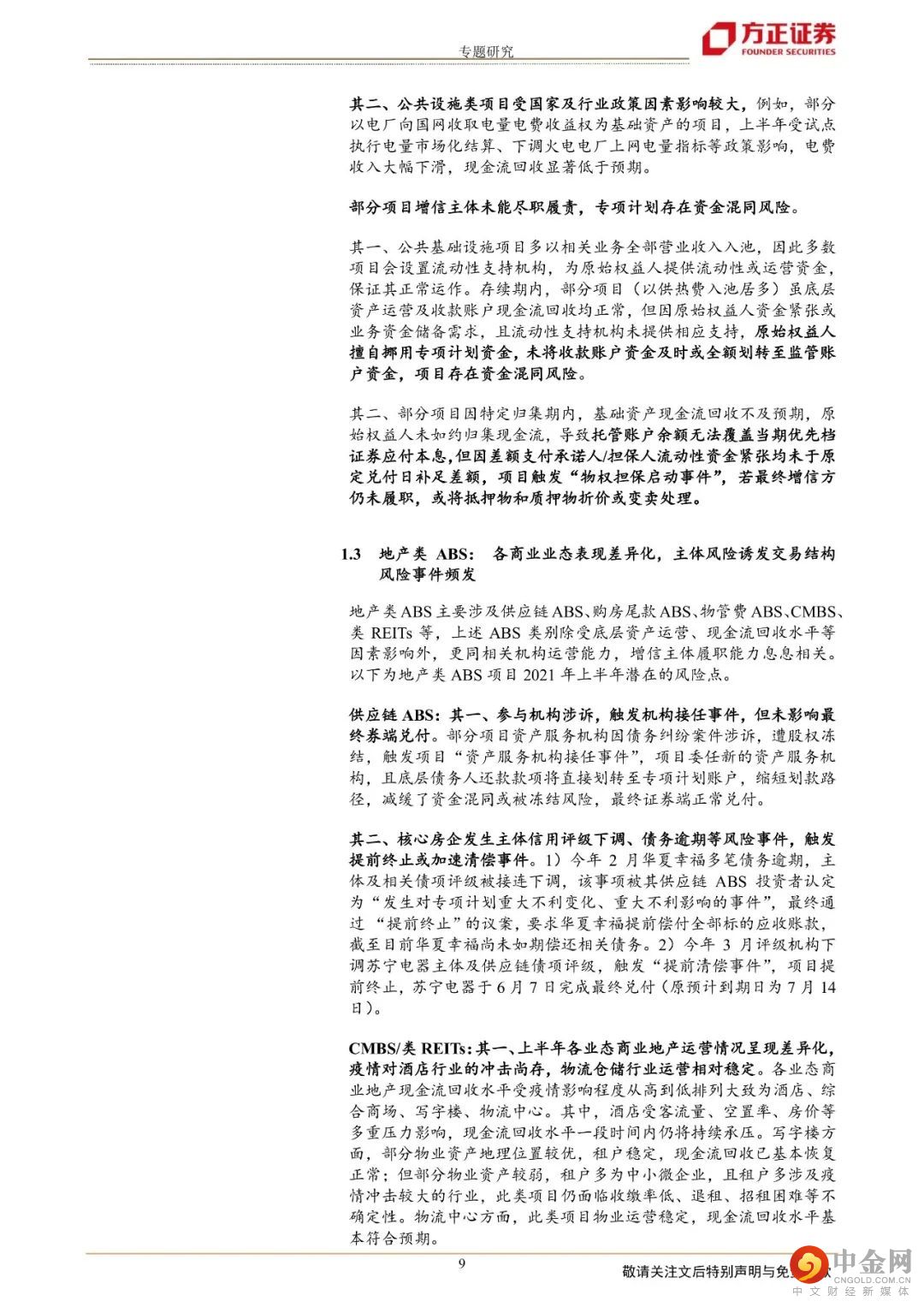 2)收费收益权类ABS:部分项目基础资产现金流回收严重不及预期;增信主体擅自挪用专项计划资金,项目存在资金混同风险;或未及时履行差补担保责任,证券兑付存在不确定性,触发物权担保事件。