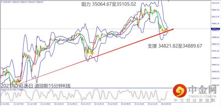 关注晚上美国公布经济数据,若受到德尔塔疫情影响造成数据不佳,道琼斯和纳指可能出现剧烈震荡。周二(27日)清晨美国如果顺利公布基建法案,有机会见到道琼斯和纳指再创波段新高。