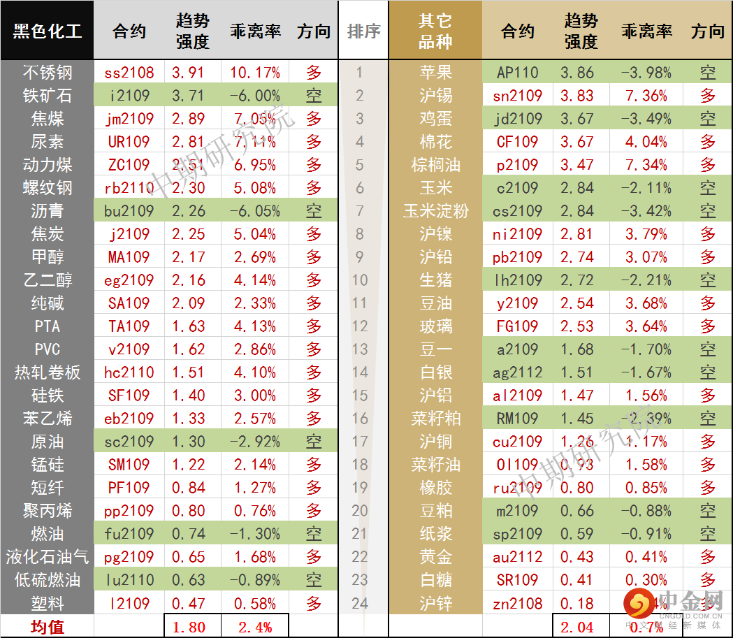 中期商品趋势榜 | 不锈钢、沪锡多头延续(0723)