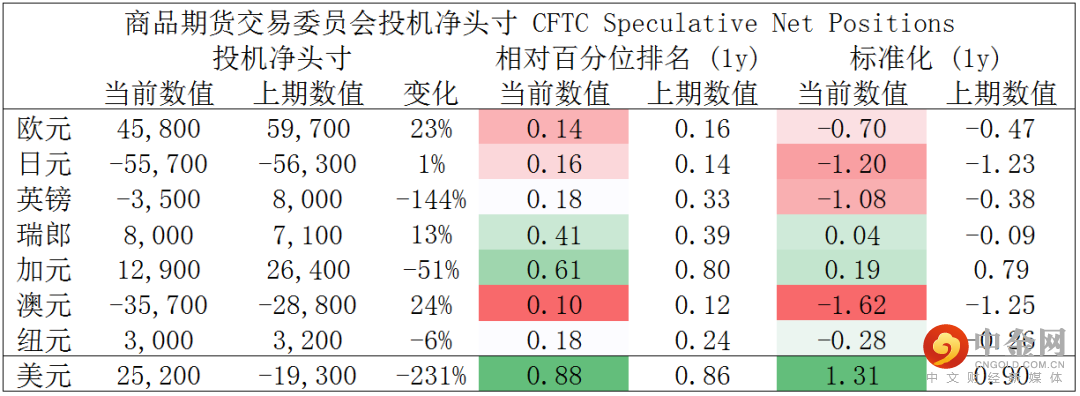 CFTC资金流数据显示,澳元空头处于极值,因此,预计短期随着资金流入并支持其回涨,另外,美元多头也处于极值。