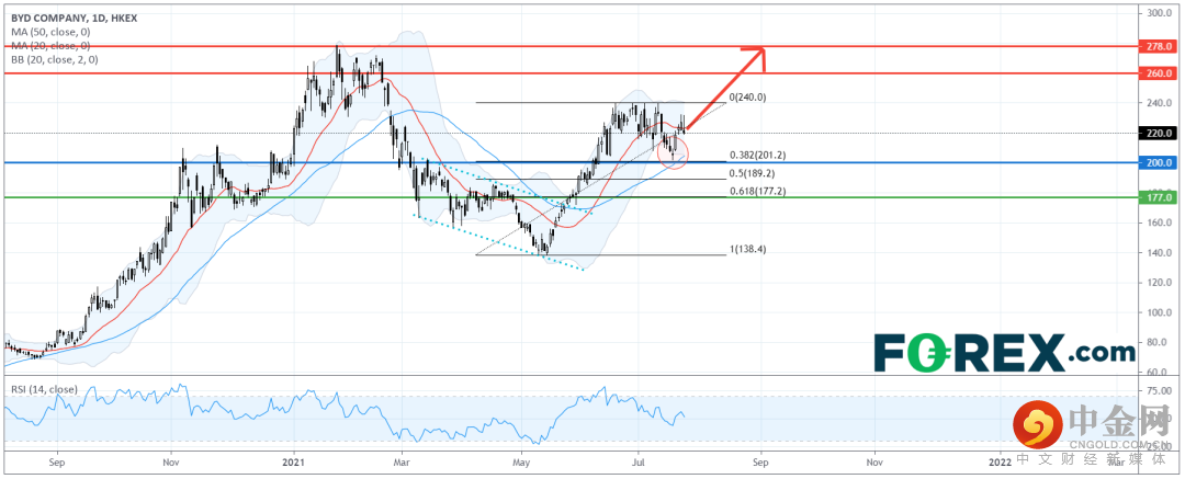 看涨的投资者可将200.00港元视为 主要支持 (止损) 位,上行目标在260.00港元及278.00港元。