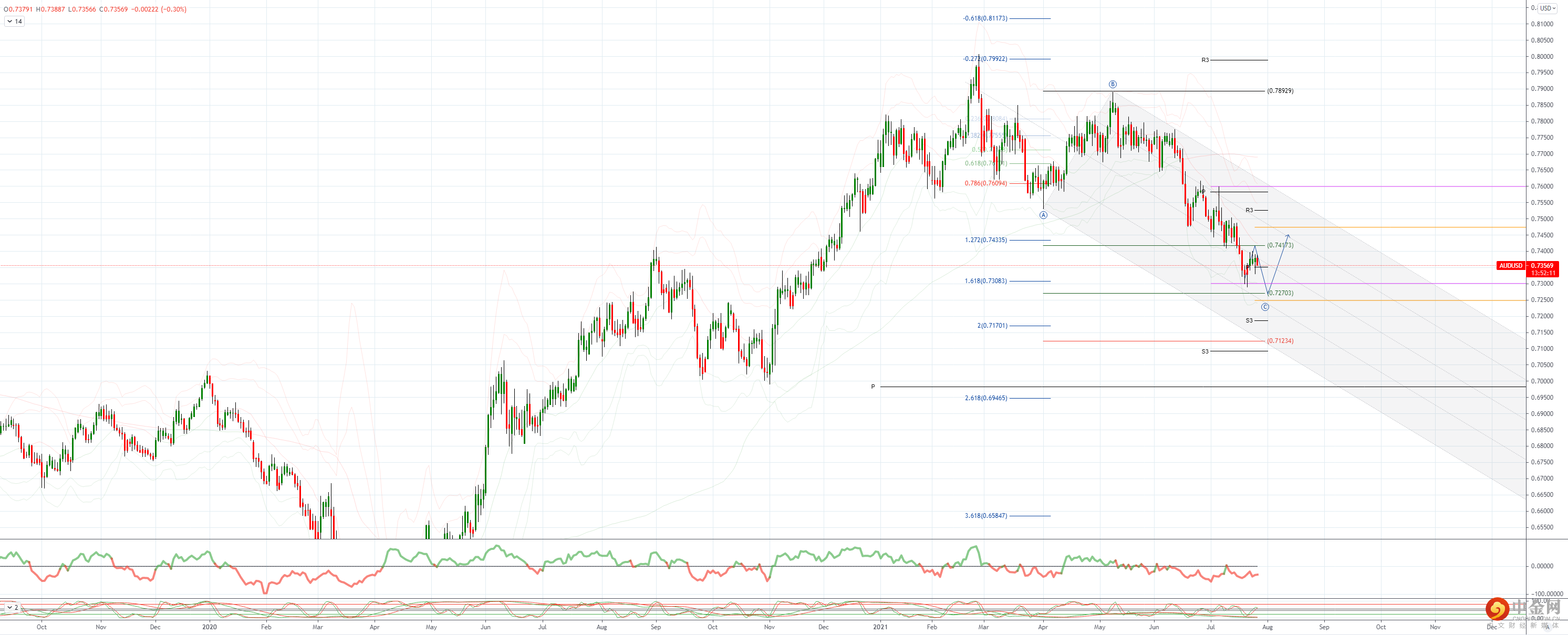0.7363 = 日内低点。 0.7371-0.7390 为亚洲时段区间。