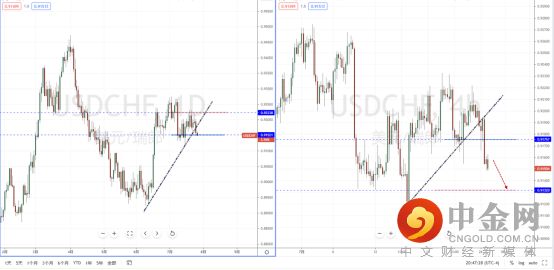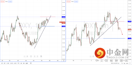 美瑞天图:目前行情在多次上行冲击压制区域0.92238一带受阻下行,并且价格有明显向下测试水平支撑带以及上升趋势线附近走弱。由于趋势空头流向尚未型形成不宜追空,从日内4小时级别,价格在有效破位之后可适当关注价格调整后的短期空头机会,下方区间目标位置参考0.91320附近。