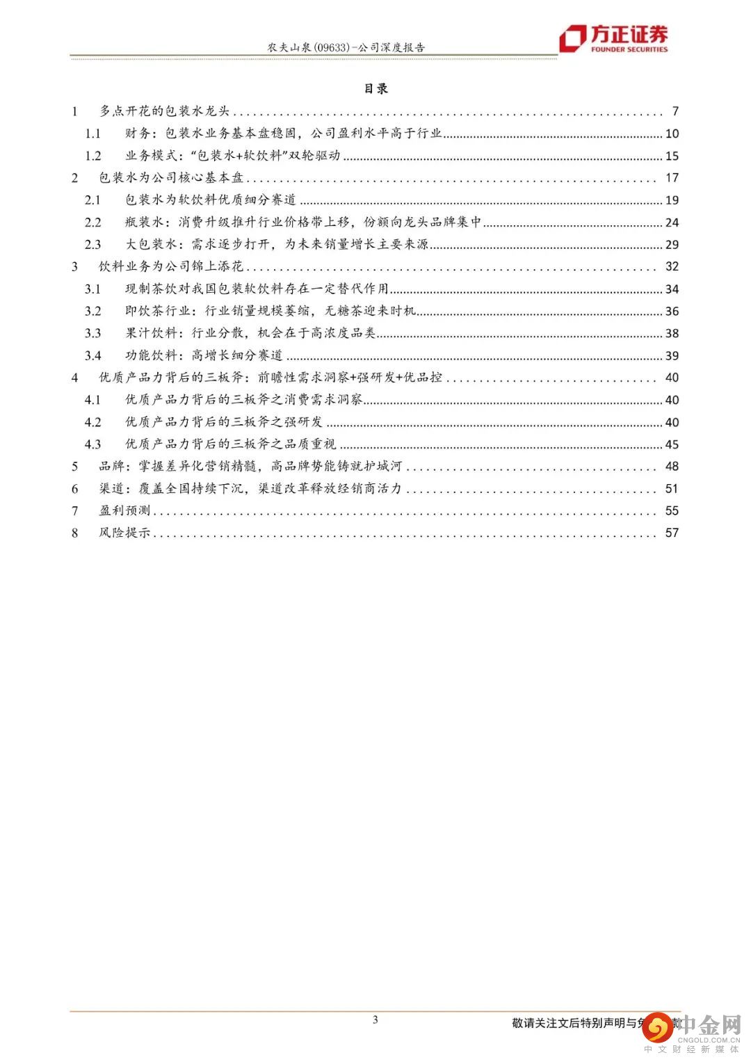 风险提示:(1)公司新品表现低于预期。(2)大包装水渠道建设不及预期。(3)水源地因不可抗因素遭受污染或毁坏。(4)发生较严重产品安全问题导致公司品牌形象受损。