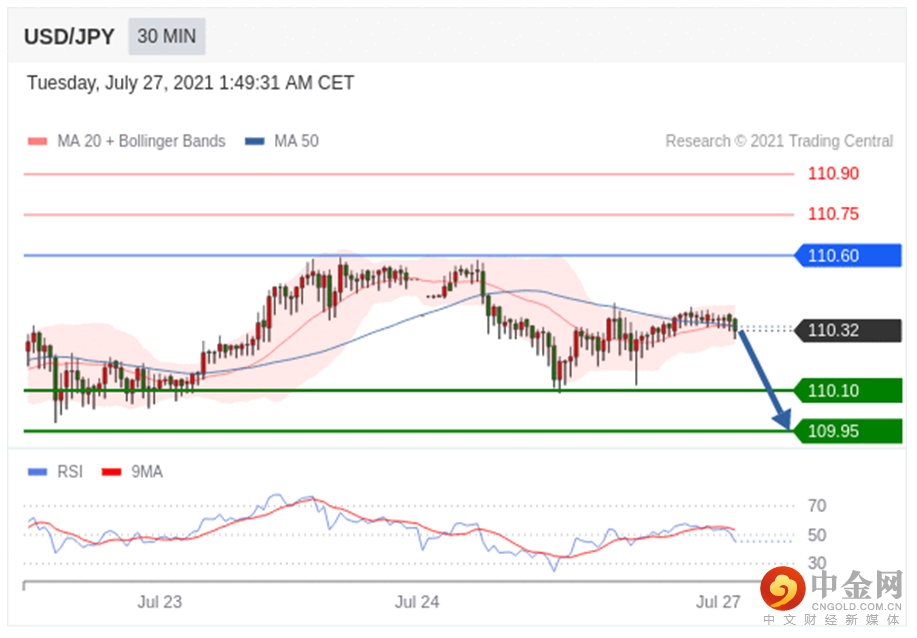 在 110.60 上,看涨,目标价位定在 110.75 ,然后为 110.90。