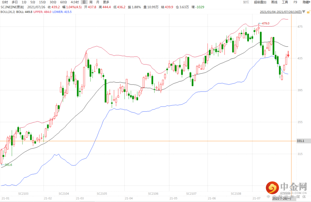图1:国内油市期价走势 单位:元/桶