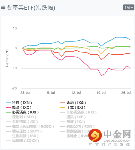 在短期趋势持续上行后,由亚马逊、特斯拉等科技股拖累,使得纳指盘中一度跌超2%。从目前ETF产业的表现,市场分化依然显现,其中ETF走势也有明显趋缓状态,处于放缓走平。短期关注:金融(IXG),工业(EXI),必须消费(KXI),原物料(MXI),公用事业(JXI),通讯(IXP),网络公司(FDN),半导体(SOXX)等产业中个股的多头机会。