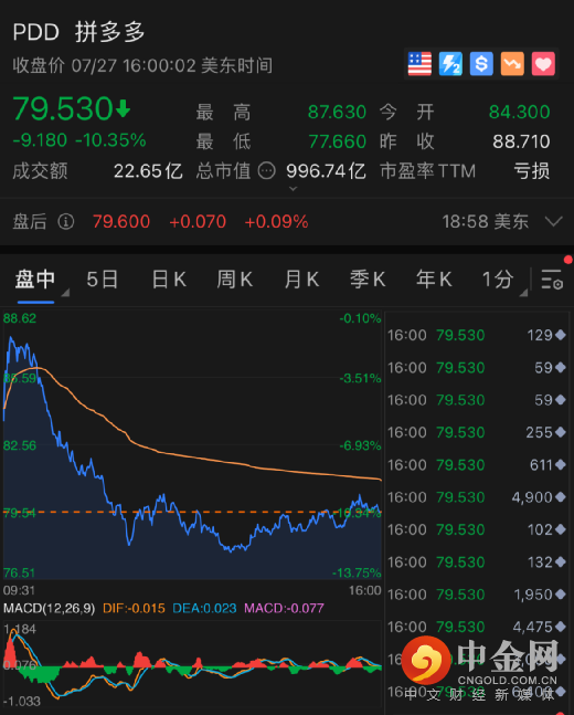 拼多多跌超10%,市值蒸发115.07亿美元,约合750亿人民币。