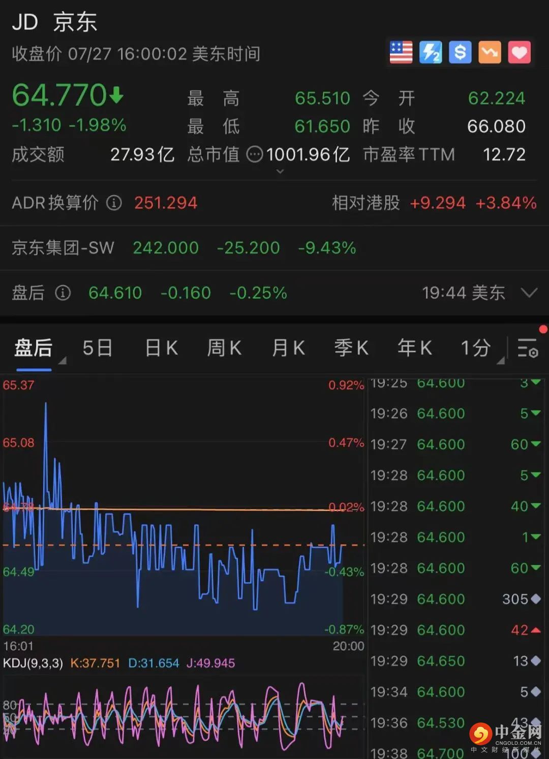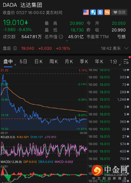 此外,达达集团跌超9%,唯品会跌超4%,