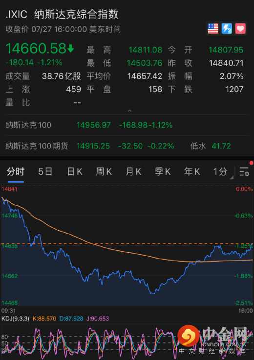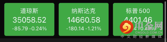 截至收盘,标普500指数跌0.47%,报4401.46点;纳斯达克指数跌1.21%,报14660.58点;道琼斯指数跌0.24%,报35058.52点。