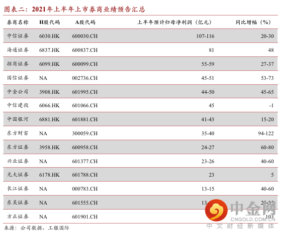 7月以来,上市券商密集披露上半年业绩预告。据不完全统计,已有超过27家上市券商已披露中报业绩预告。在已披露业绩预告的上市券商中,大多数券商半年报预喜,我们整理部分已披露业绩预告且归母净利润大于10亿元的上市券商业绩预告如下: